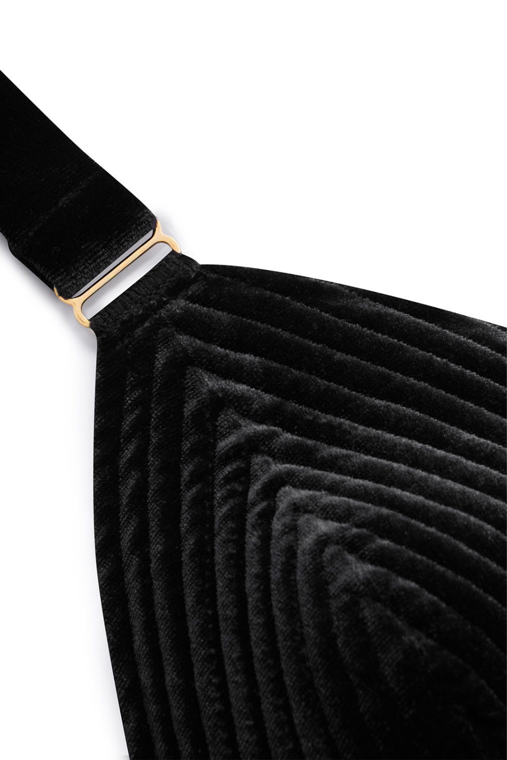 • Wireless, foam cups covered in topstitched velvet.