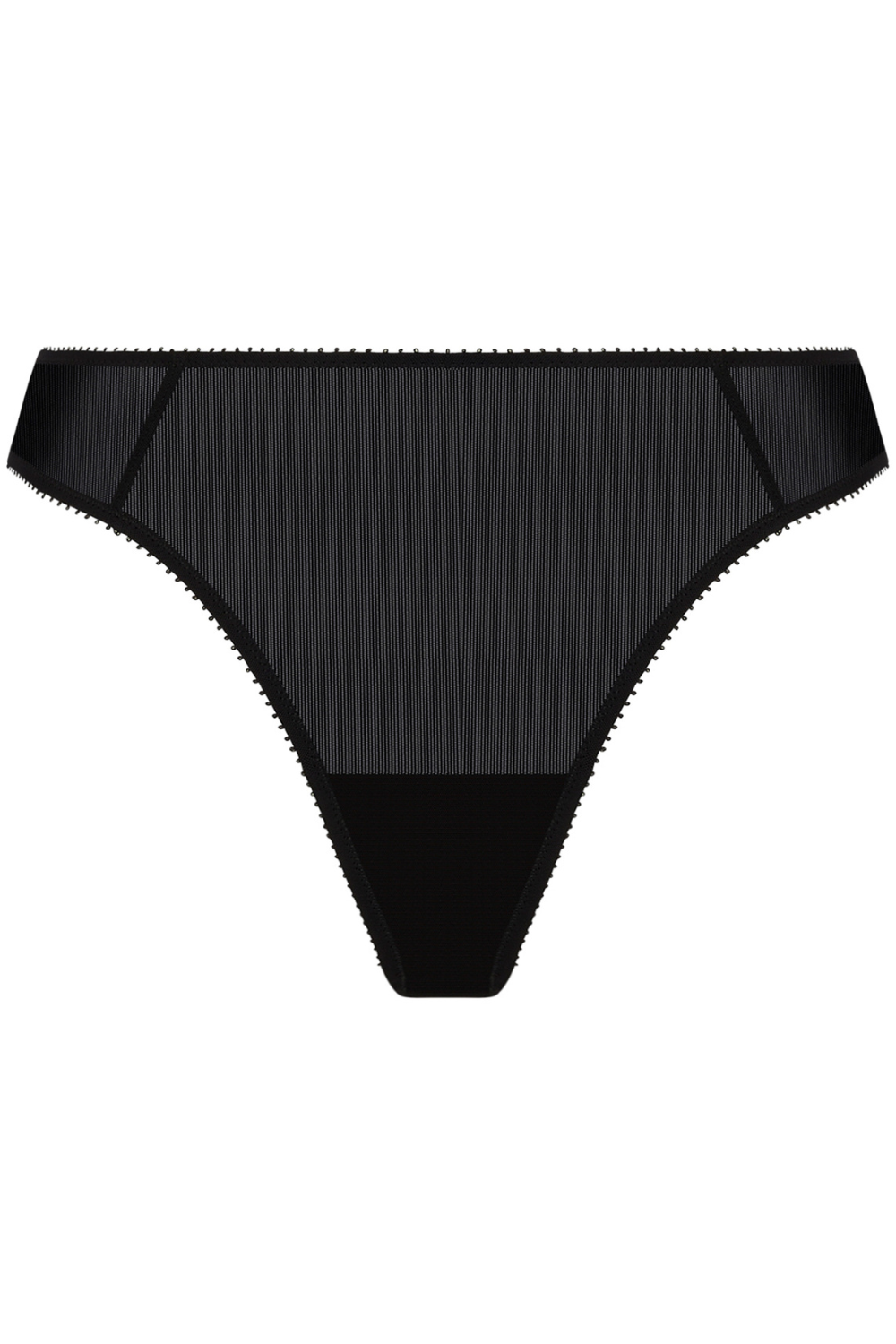 The Révélation Beauté Black Thong combines modern elegance with refined sensuality. Crafted from delicate sheer tulle, it subtly reveals your curves. Experience comfort and sophistication seamlessly intertwined.