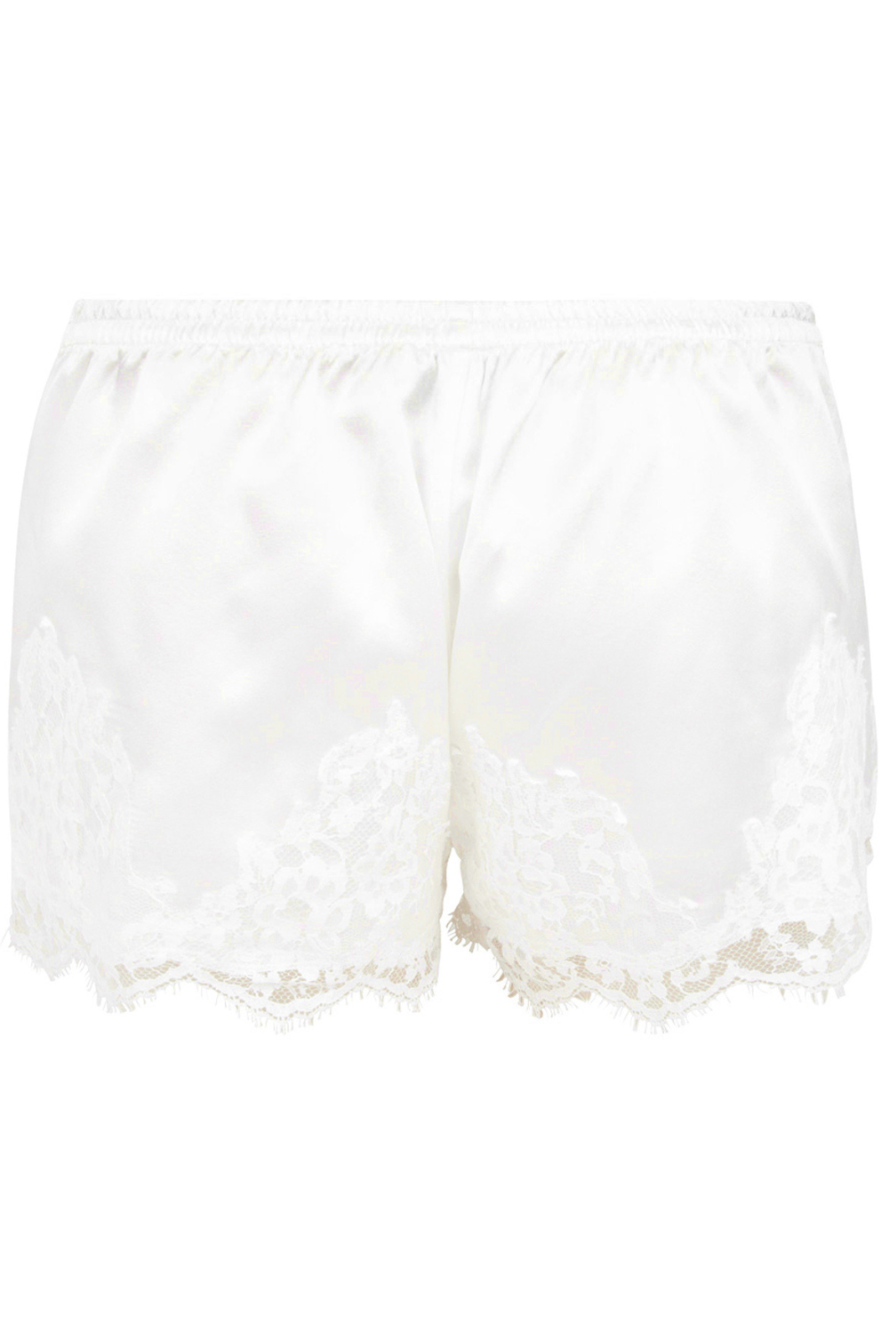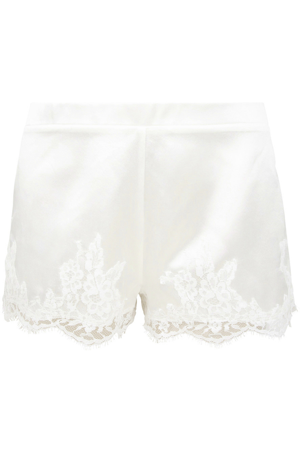 The Splendeur Soie ivory silk shorts feature a flat front waistband, elasticated back, and Calais lace inlays. Pair with the matching camisole for refined French luxury.