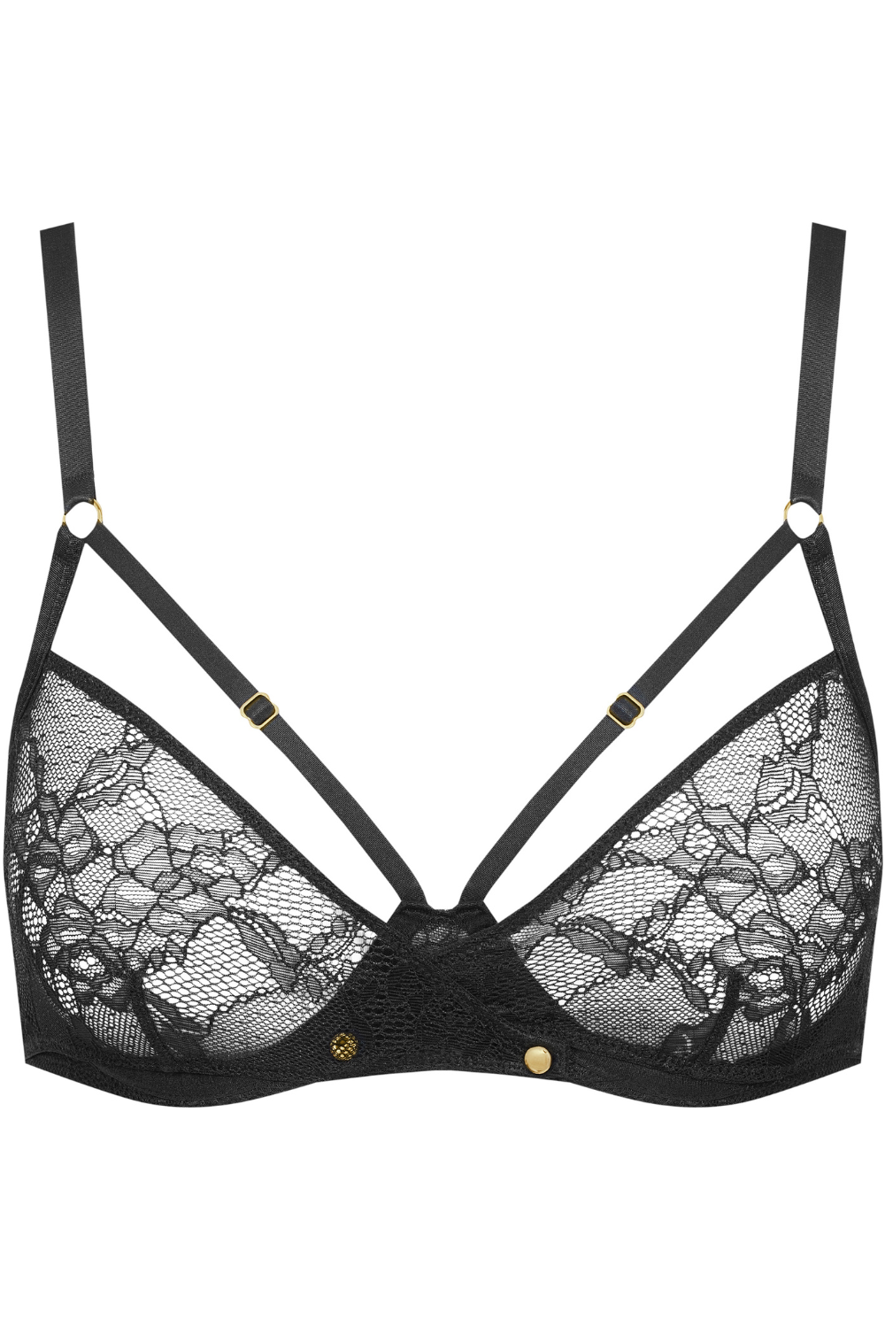 The Jeux Magnétiques Balconette Bra combines floral lace with underwired support, enhancing the bust. Golden magnets let you reveal or conceal at a single touch, turning every movement into a seductive, playful moment of desire.