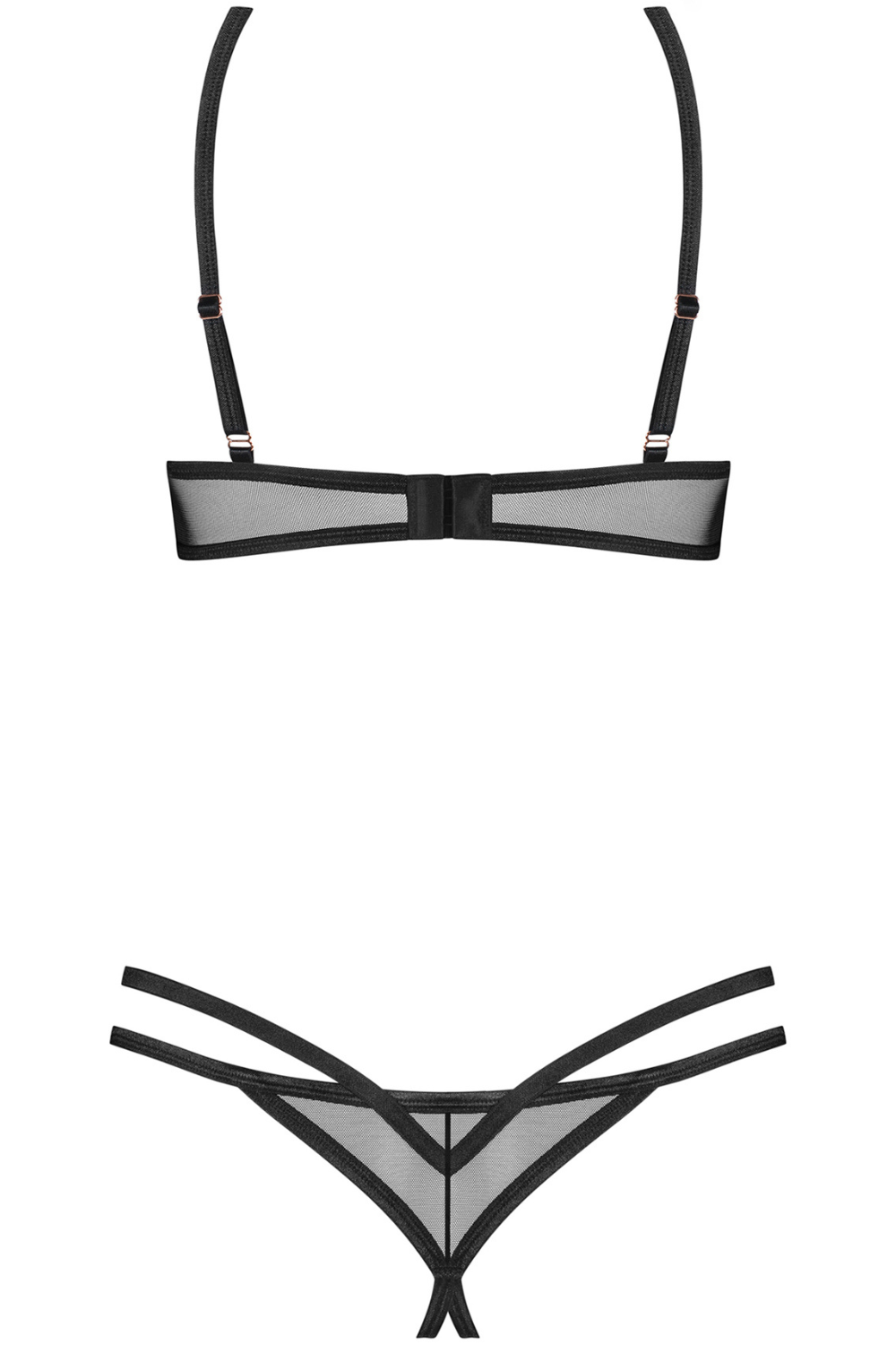 Embrace your bold side with the Euridia 2-piece crotchless set. This striking black lingerie set features an open bra and a crotchless thong. Feel confident, playful, and utterly unbeatable in this unique set.
