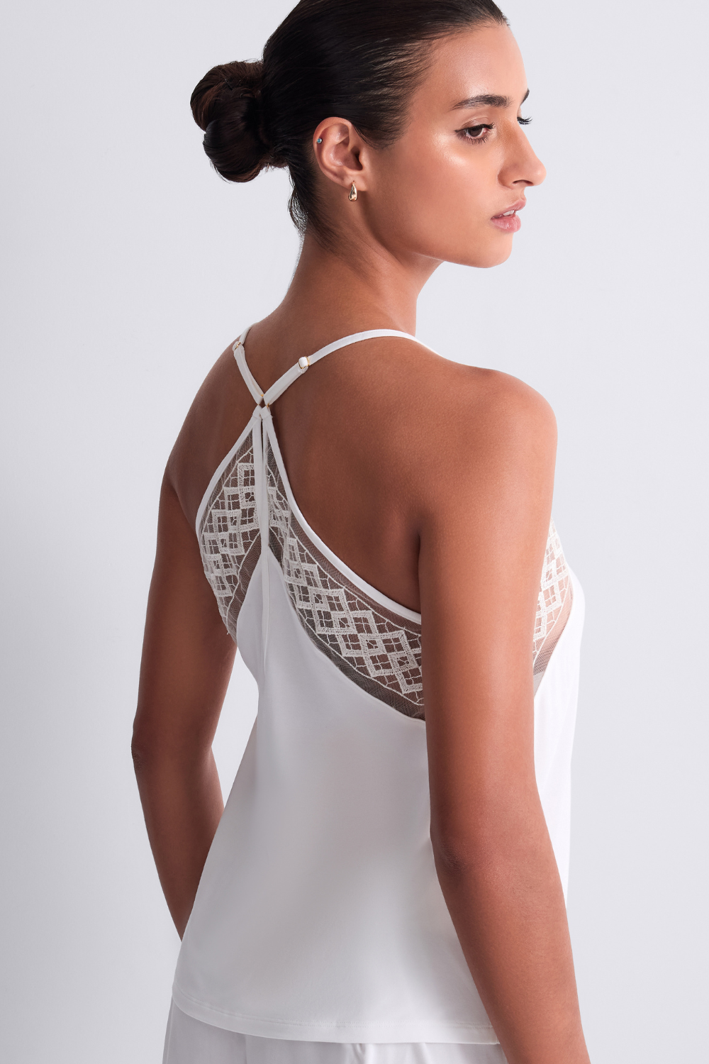 Elegant and timeless, the Sweet Obsession ivory Modal Camisole features graphic embroidered, slim adjustable straps, and a softly flared cut for a sensual, effortless look.