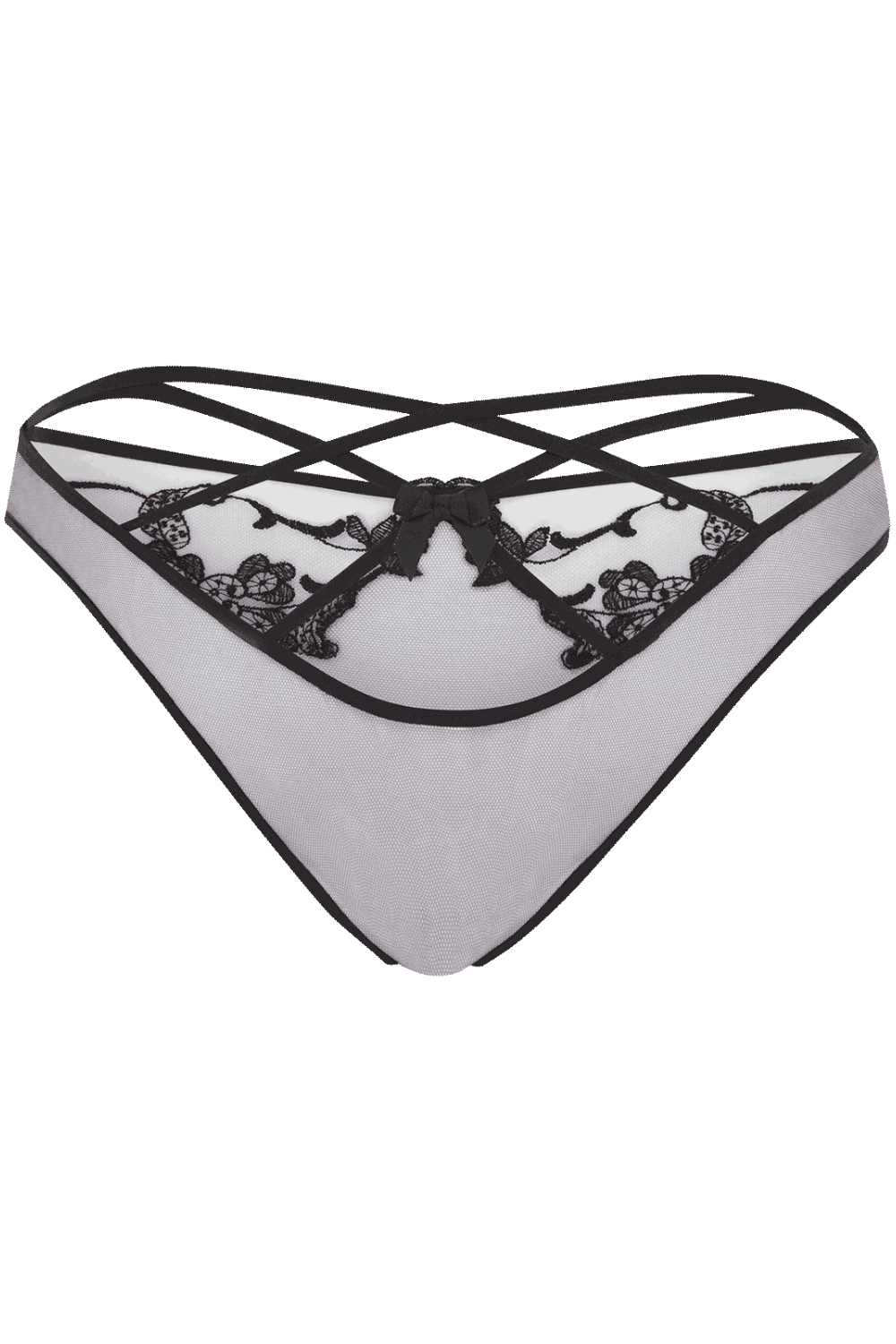 The Mirabelle brief perfectly blends sheer tulle with delicate black guipure embroidery for an effortlessly elegant look. Daring cut-out details at the front and back add a flirtatious edge.
