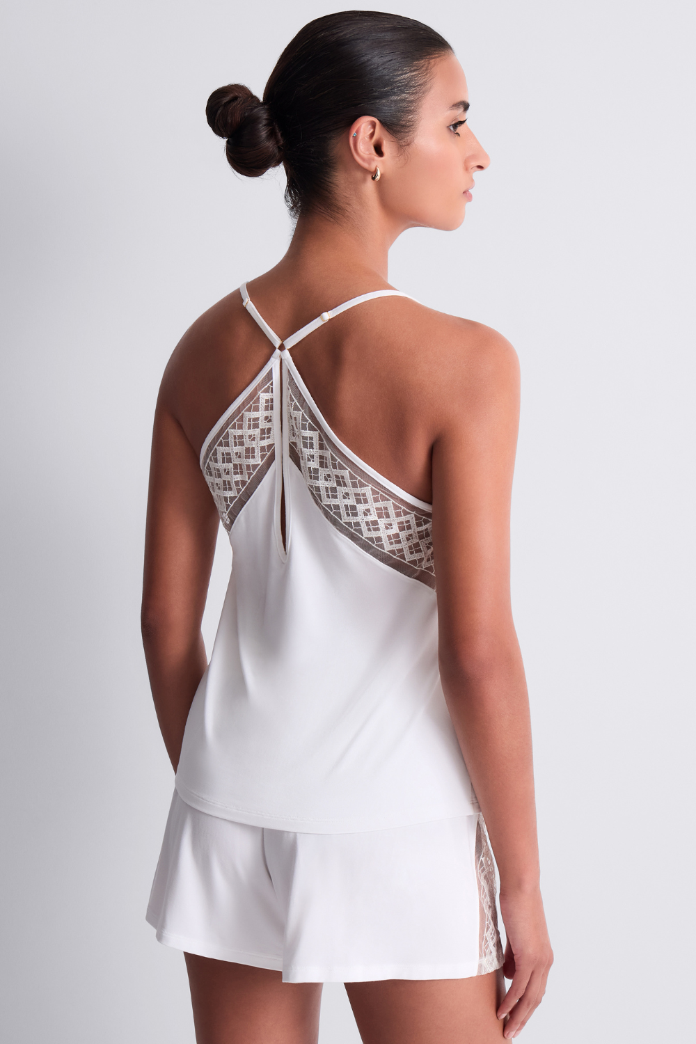 • Luxury pyjama shorts in ivory.