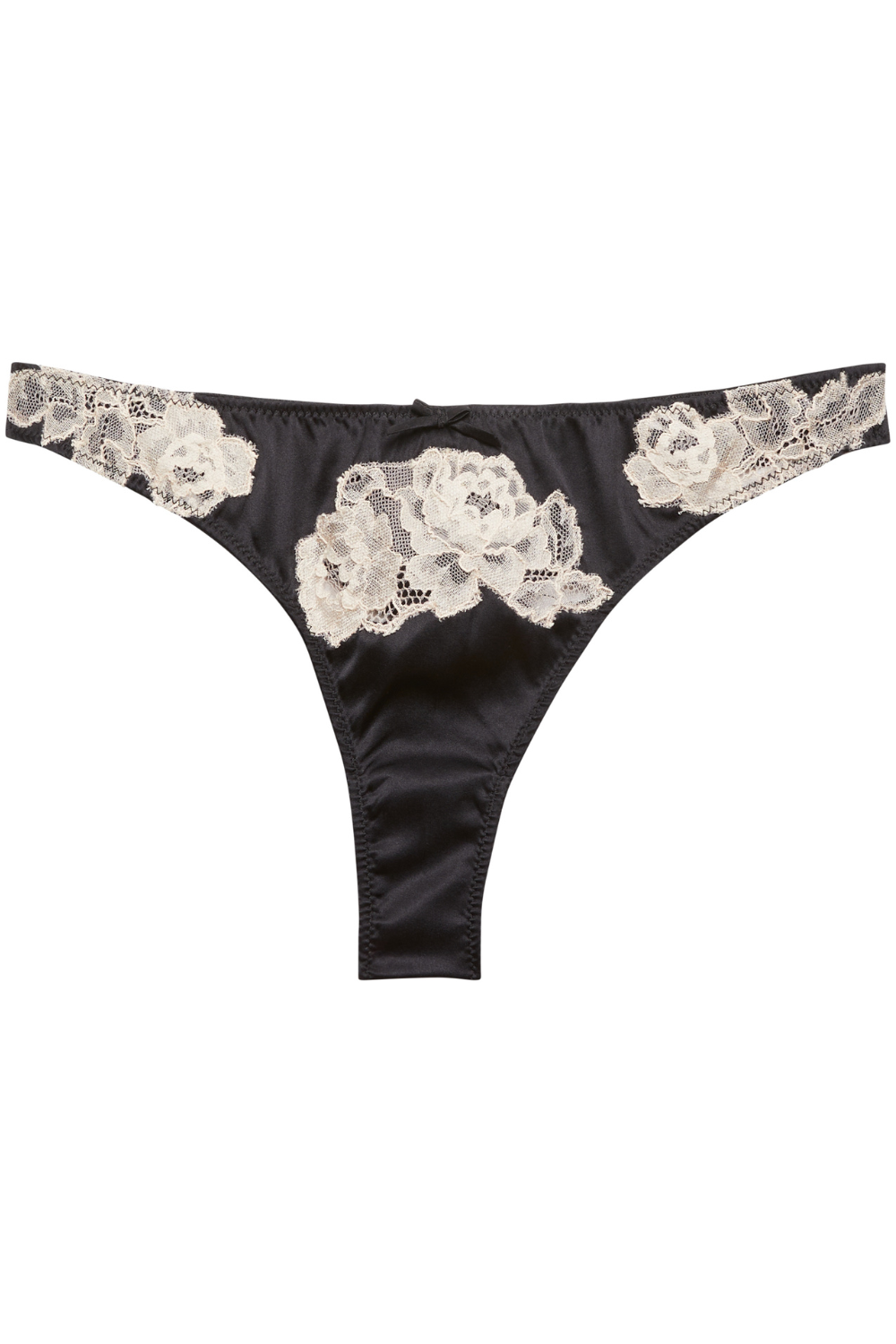 The Juliet Black Thong blends sumptuous silk with delicate lace appliqué for an elegant touch. Its refined design features a charming front bow and a subtle back keyhole detail, offering a sophisticated silhouette that feels as exquisite as it looks.