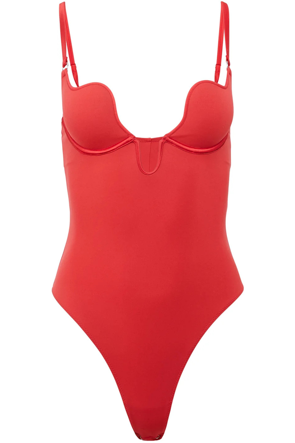 Sleek, sculpting, and seductive. Fleur du Mal’s Le Stretch Micro Seduce U-Plunge Bodysuit in red features 4-way stretch microfiber, luxe silk straps, molded cups, and a snap crotch for all-day comfort. Wear solo or layered—either way, it stuns.
