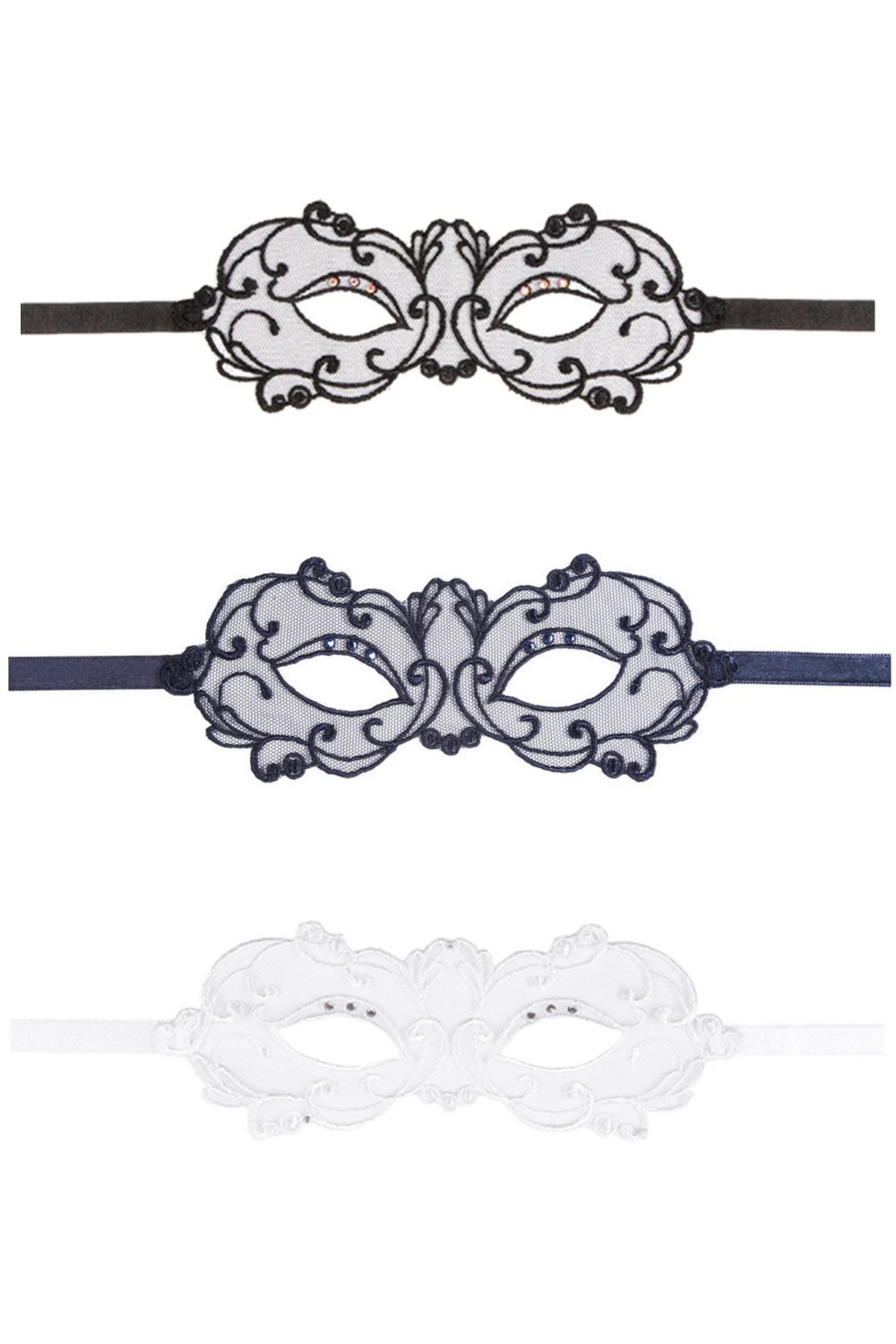 Discover the luxurious Soir De Venise Eye Mask. This fine, embroidered tulle mask is designed to fit the contours of your face like body jewellery, creating a mysterious allure.