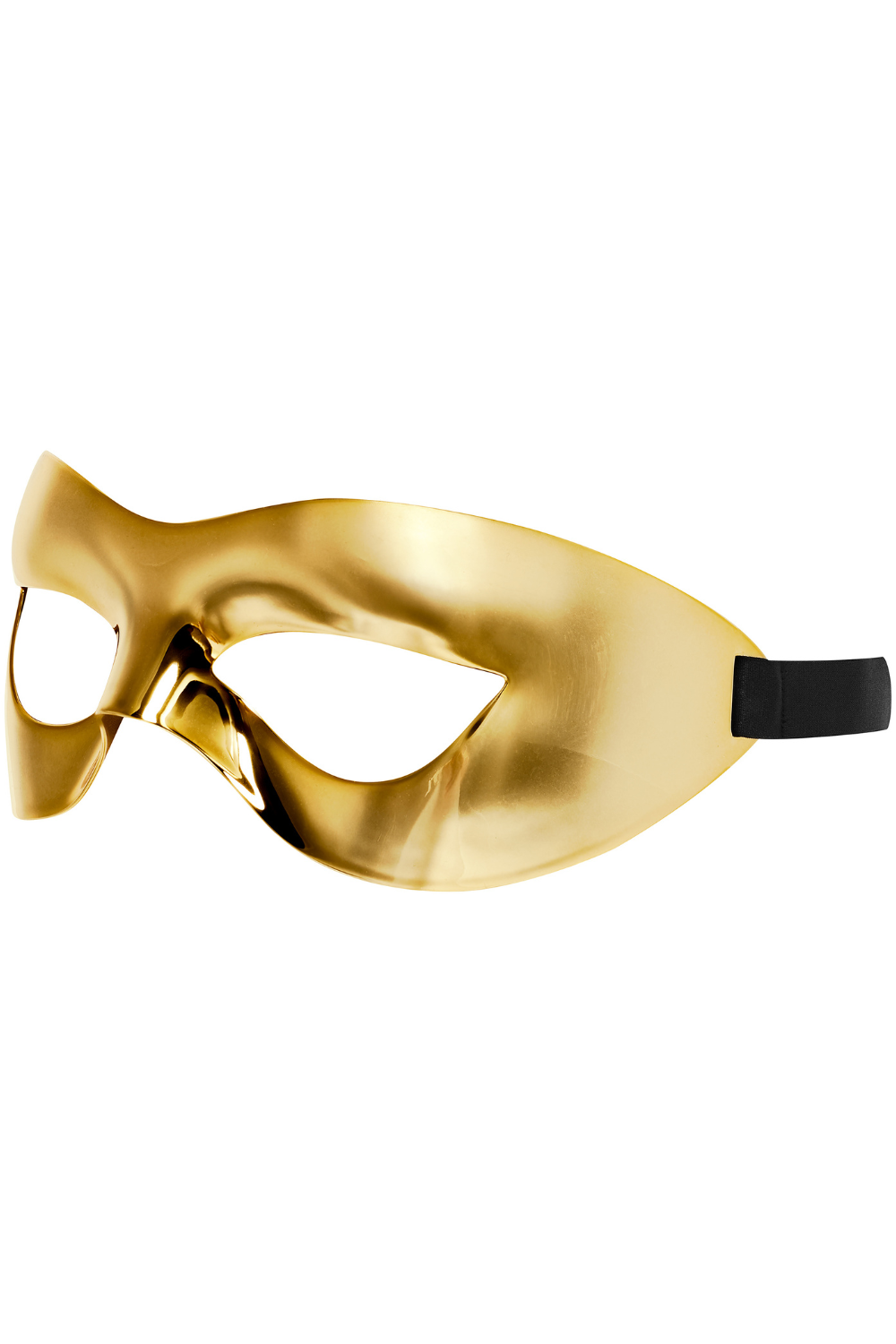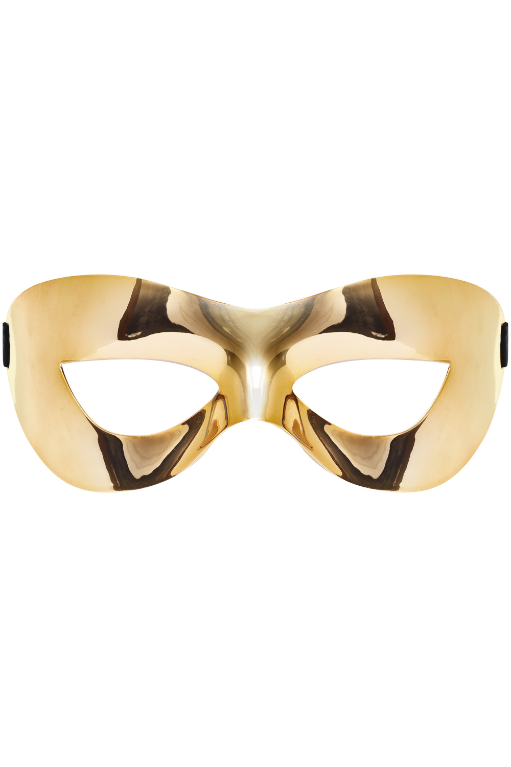 Embrace mystery and elegance with the L'Anonyme Mask. Crafted from a rigid mold and lavishly plated in gold inside and out, it contours smoothly to every face shape. It features an adjustable black elastic strap for a secure, comfortable fit. Perfect for role-playing or sophisticated events.