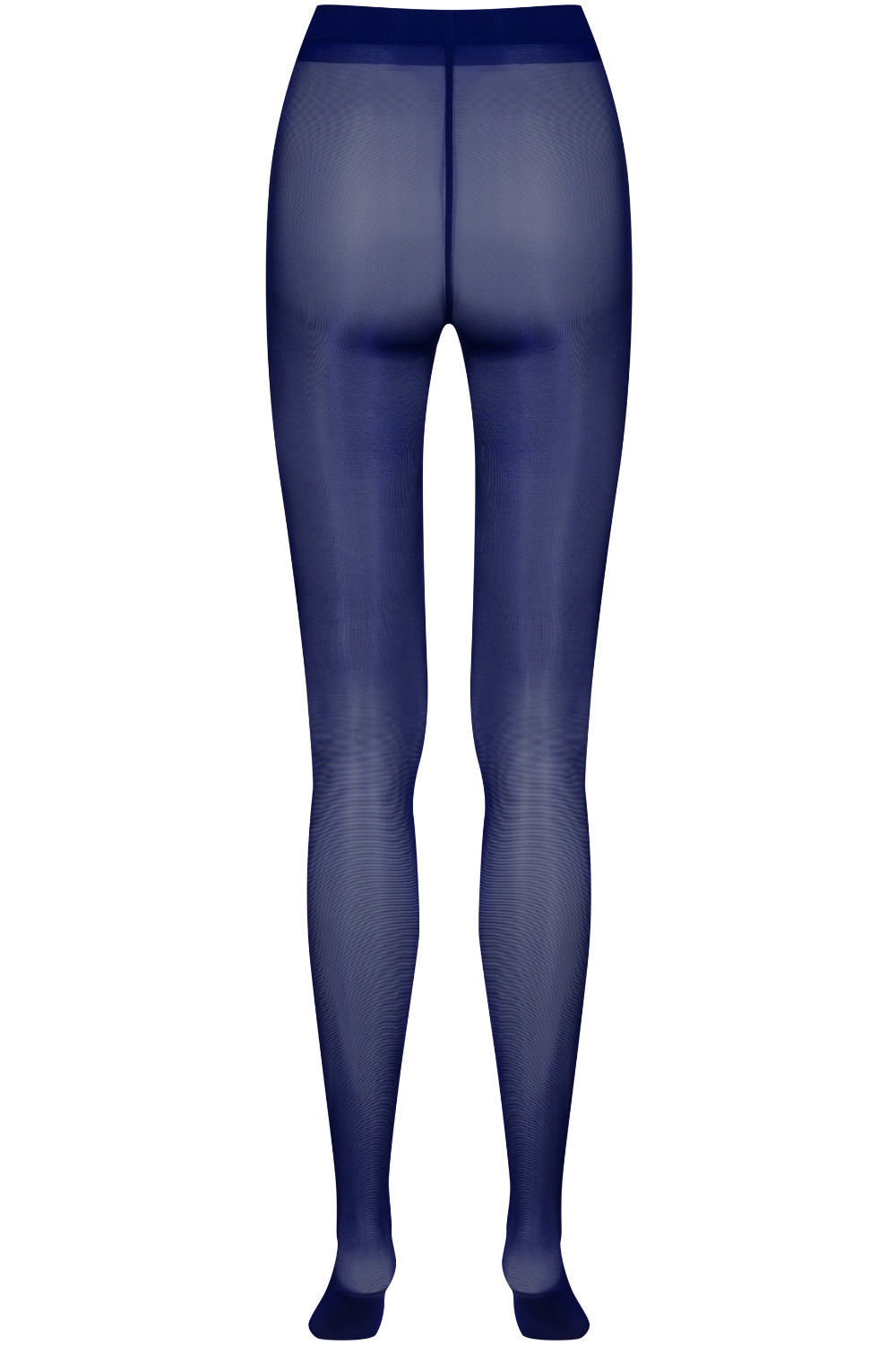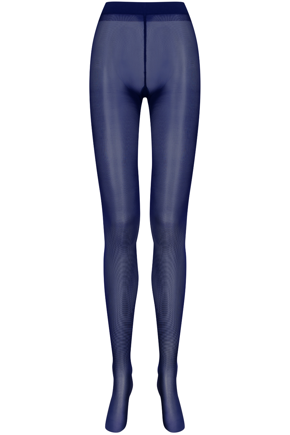 Luxurious Obsession semi-opaque navy blue tights crafted to elongate and illuminate. Refined sheen, high-waisted shaping band, cotton gusset, reinforced construction. Timeless elegance for day or night.