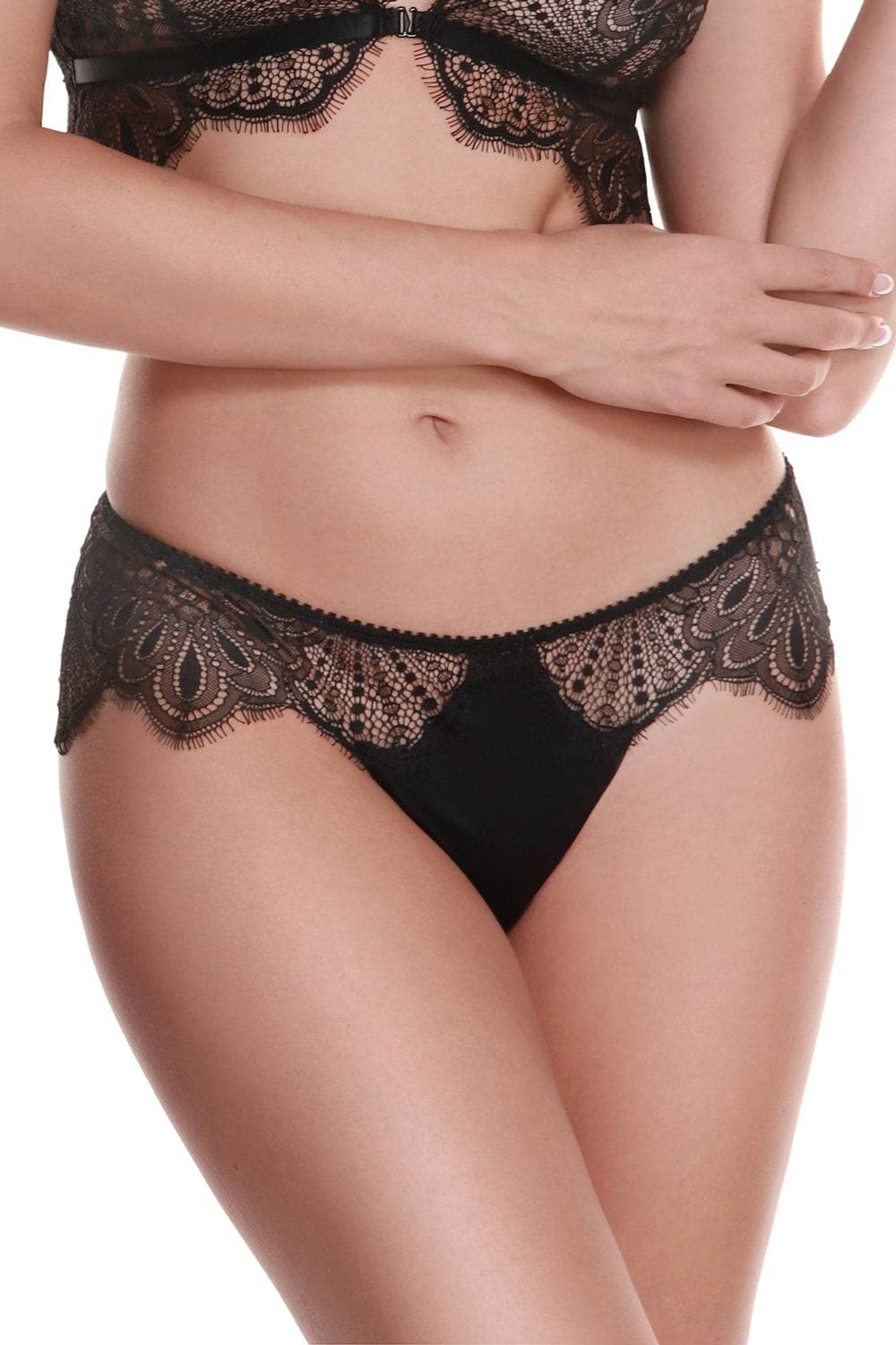 - Sheer lace and soft stretch satin.